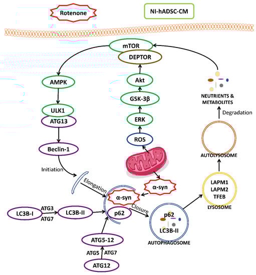 Ramalingam, M.; Jeong, H.-S.; Hwang, J.; Cho, H.-H.; Kim, B.C.; Kim, E.; Jang, S. Autophagy Signaling by Neural-Induced Human Adipose Tissue-Derived Stem Cell-Conditioned Medium during Rotenone-Induced Toxicity in SH-SY5Y Cells. Int. J. Mol. Sci. 2022, 23, 4193. https://doi.org/10.3390/ijms23084193