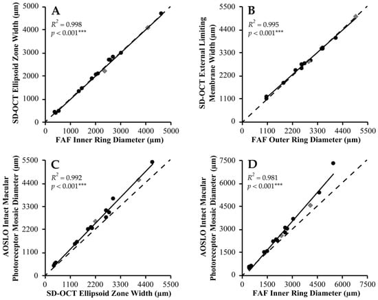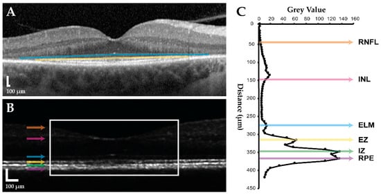 - Strampe, M.R.; Huckenpahler, A.L.; Higgins, B.P.; Tarima, S.; Visotcky, A.; Stepien, K.E.; Kay, C.N.; Carroll, J. Intraobserver repeatability and interobserver reproducibility of ellipsoid zone measurements in retinitis pigmentosa. Transl. Vis. Sci. Technol. 2018, 7, 13. [Google Scholar] [CrossRef]