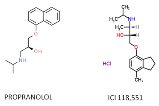 The atomic structure of the propranolol and ICI 118,551 molecules.