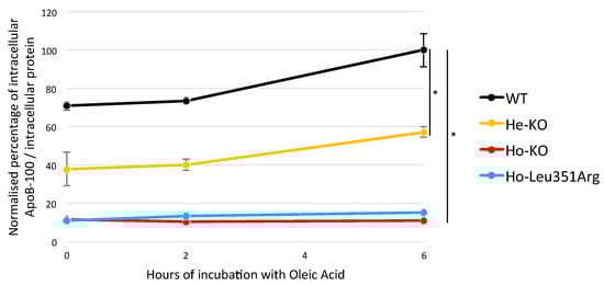 - Srivastava, R.A.; Srivastava, N.; Averna, M.; Cefalu, A.B.; Schonfeld, G. Molecular Bases of Low Production Rates of Apolipoprotein B-100 and Truncated ApoB-82 in a Mutant HepG2 Cell Line Generated by Targeted Modification of the Apolipoprotein B Gene. J. Lipid Res. 1999, 40, 901–912. [Google Scholar] [CrossRef]