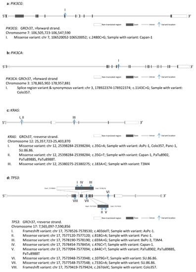 2.4. KRAS and TP53 Gene Variants Were Observed in PDAC Cell Lines