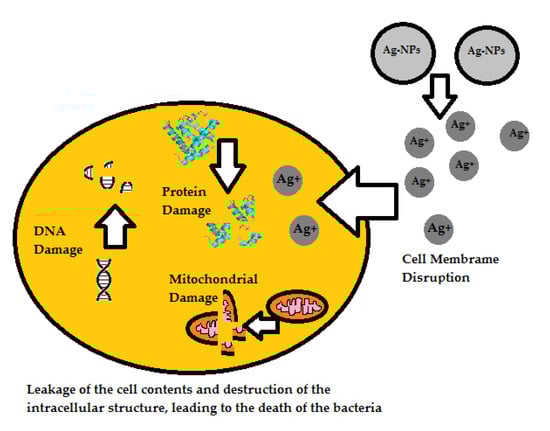 - Franci, G.; Falanga, A.; Galdiero, S.; Palomba, L.; Rai, M.; Morelli, G.; Galdiero, M. Silver Nanoparticles as Potential Antibacterial Agents. Molecules 2015, 20, 8856–8874. [Google Scholar] [CrossRef] [Green Version]