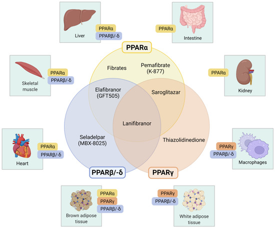 - Montaigne, D.; Butruille, L.; Staels, B. PPAR control of metabolism and cardiovascular functions. Nat. Rev. Cardiol. 2021, 18, 809–823. [Google Scholar] [CrossRef]