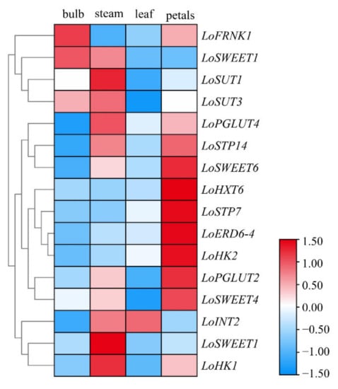 - Gu, J.; Zeng, Z.; Wang, Y.; Lyu, Y. Transcriptome Analysis of Carbohydrate Metabolism Genes and Molecular Regulation of Sucrose Transport Gene LoSUT on the Flowering Process of Developing Oriental Hybrid Lily ‘Sorbonne’ Bulb. Int. J. Mol. Sci. 2020, 21, 3092. [Google Scholar] [CrossRef]
