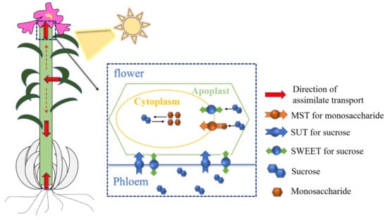 - Hu, Z.; Tang, Z.; Zhang, Y.; Niu, L.; Yang, F.; Zhang, D.; Hu, Y. Rice SUT and SWEET Transporters. Int. J. Mol. Sci. 2021, 22, 11198. [Google Scholar] [CrossRef]