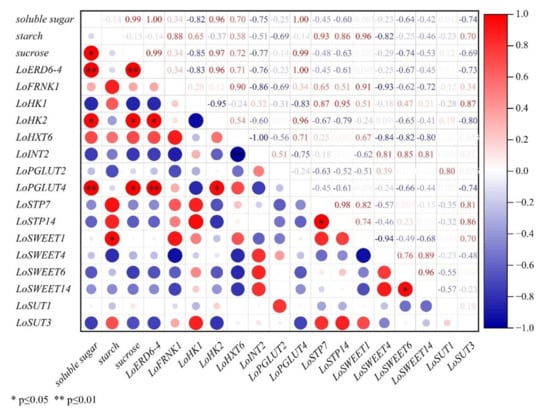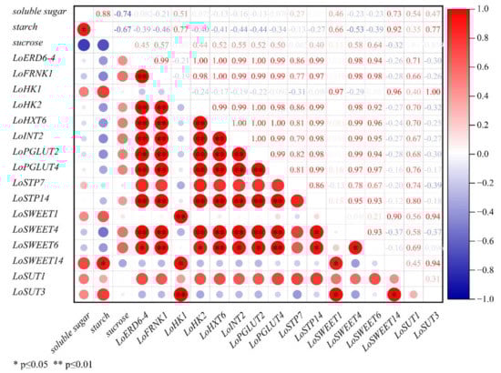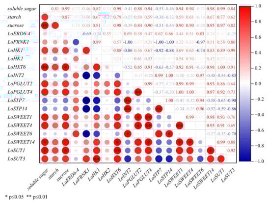 2.5. Correlation Analysis between Expression Levels of ST Genes and Carbohydrate Contents