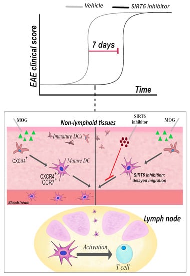 - Ferrara, G.; Benzi, A.; Sturla, L.; Marubbi, D.; Frumento, D.; Spinelli, S.; Abbotto, E.; Ivaldi, F.; von Holtey, M.; Murone, M.; et al. Sirt6 inhibition delays the onset of experimental autoimmune encephalomyelitis by reducing dendritic cell migration. J. Neuroinflamm. 2020, 17, 228. [Google Scholar]
