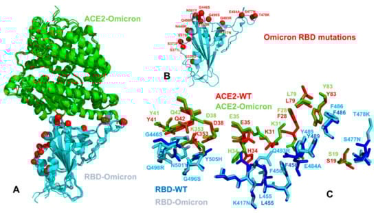 - Lan, J.; He, X.; Ren, Y.; Wang, Z.; Zhou, H.; Fan, S.; Zhu, C.; Liu, D.; Shao, B.; Liu, T.-Y.; et al. Structural and computational insights into the SARS-CoV-2 Omicron RBD-ACE2 interaction. bioRxiv 2022. [Google Scholar] [CrossRef]
