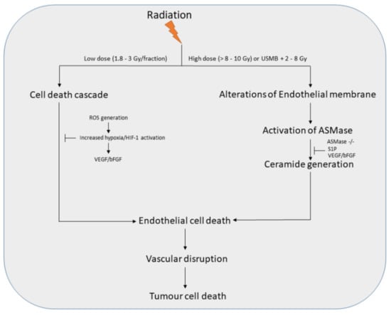 - Garcia-Barros, M.; Paris, F.; Cordon-Cardo, C.; Lyden, D.; Rafii, S.; Haimovitz-Friedman, A.; Fuks, Z.; Kolesnick, R. Tumor Response to Radiotherapy Regulated by Endothelial Cell Apoptosis. Science 2003, 300, 1155–1159. [Google Scholar] [CrossRef]