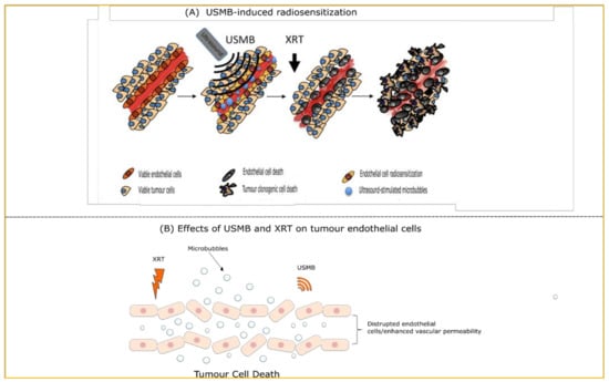 - Al-Mahrouki, A.A.; Wong, E.; Czarnota, G.J. Ultrasound-stimulated microbubble enhancement of radiation treatments: Endothelial cell function and mechanism. Oncoscience 2015, 2, 944–957. [Google Scholar] [CrossRef]
