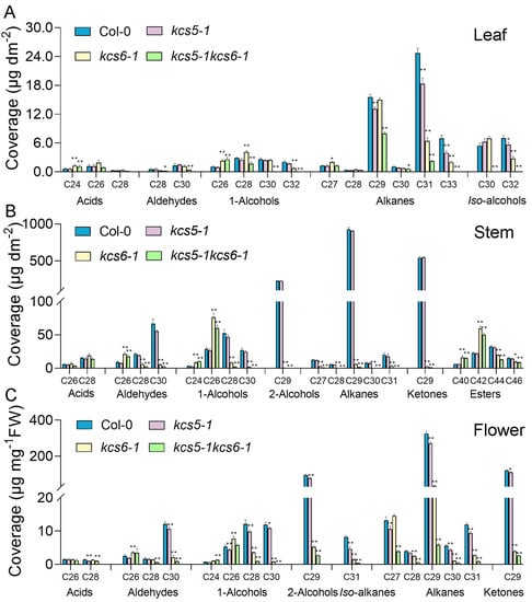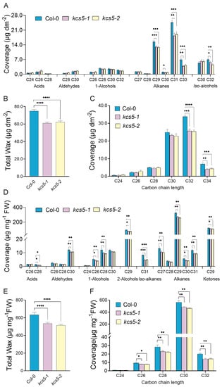 2.1. KCS5 Dysfunction Caused Different Effects on Wax Profiling of Different Organs