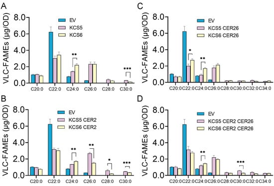 - Kim, J.; Kim, R.J.; Lee, S.B.; Chung Suh, M. Protein-protein interactions in fatty acid elongase complexes are important for very-long-chain fatty acid synthesis. J. Exp. Bot. 2021, erab543. [Google Scholar] [CrossRef] [PubMed]