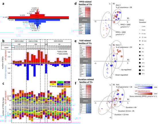 2.2.3. Prediction of TFs Families Mediating the Direction of Expression Change and Response to Varying Intensity and Duration of High Light Exposure