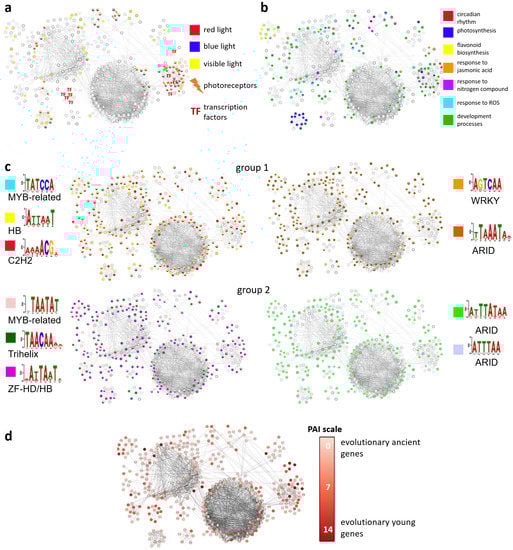 - Genes responding to light stimulus (7), PIF TFs (4), phosphoproteins (4), phytochromes (3), cryptochromes (2), cryptochrome-interacting basic-helix-loop-helix (2), WRKY (2);