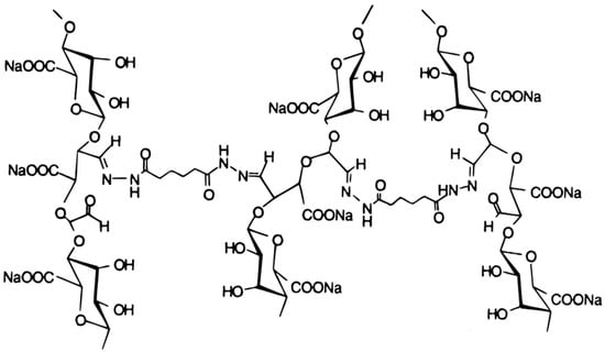 Poly(aldehyde guluronate) (PAG) hydrogels can be prepared from alginate by acid hydrolysis and oxidation, followed by covalent cross-linking with adipic acid dihydrazide (AAD) (Figure 6) [308].