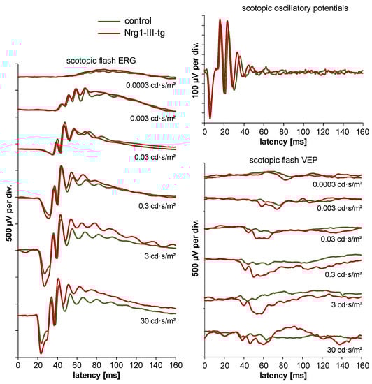 - Ridder, W.; Nusinowitz, S. The visual evoked potential in the mouse—Origins and response characteristics. Vis. Res. 2006, 46, 902–913. [Google Scholar] [CrossRef] [Green Version]