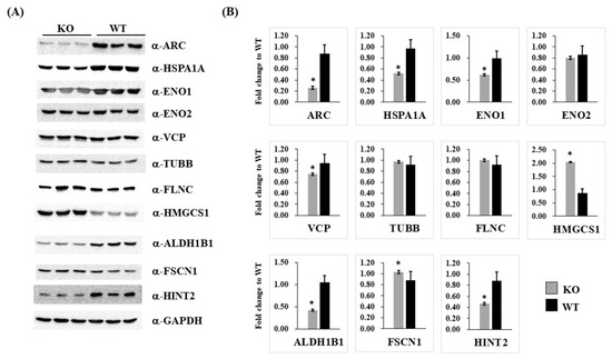 2.3. Proteomes of ARC-KO HEK293 Cells Identified Using Label-Free Mass Spectrometry-Based Shotgun Proteomics