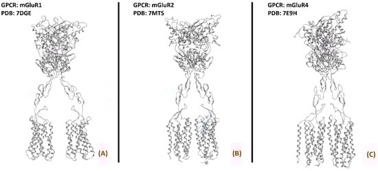 - Lin, S.; Han, S.; Cai, X.; Tan, Q.; Zhou, K.; Wang, D.; Wang, X.; Du, J.; Yi, C.; Chu, X.; et al. Structures of Gi-bound metabotropic glutamate receptors mGlu2 and mGlu4. Nature 2021, 594, 583–588. [Google Scholar] [CrossRef] [PubMed]
