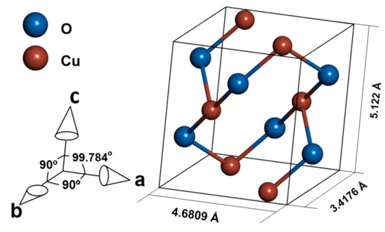 - Åsbrink, S.; Norrby, L.-J. A Refinement of the Crystal Structure of Copper(II) Oxide with a Discussion of Some Exceptional e.s.d.’s. Acta Crystallogr. Sect. B 1970, 26, 8–15. [Google Scholar] [CrossRef]