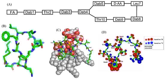 - Pristovsek, P.; Kidric, J. Solution structure of polymyxins B and E and effect of binding to lipopolysaccharide: An NMR and molecular modeling study. J. Med. Chem. 1999, 42, 4604–4613. [Google Scholar] [CrossRef] [PubMed]