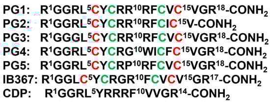 - Kokryakov, V.N.; Harwig, S.S.; Panyutich, E.A.; Shevchenko, A.A.; Aleshina, G.M.; Shamova, O.V.; Korneva, H.A.; Lehrer, R.I. Protegrins: Leukocyte antimicrobial peptides that combine features of corticostatic defensins and tachyplesins. FEBS Lett. 1993, 327, 231–236. [Google Scholar] [CrossRef]