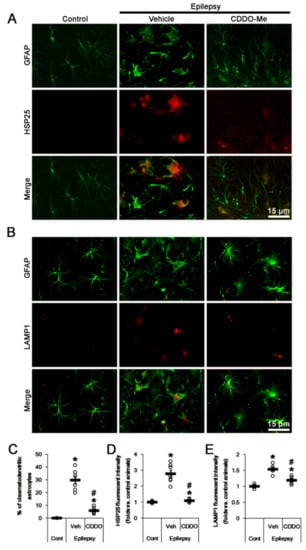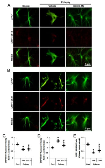 Lee, D.-S.; Kim, T.-H.; Park, H.; Kim, J.-E. CDDO-Me Attenuates Clasmatodendrosis in CA1 Astrocyte by Inhibiting HSP25-AKT Mediated DRP1-S637 Phosphorylation in Chronic Epilepsy Rats. Int. J. Mol. Sci. 2022, 23, 4569. https://doi.org/10.3390/ijms23094569