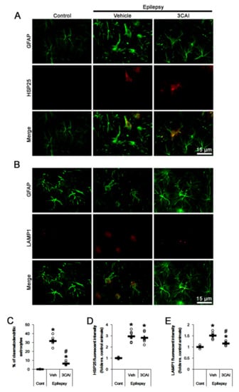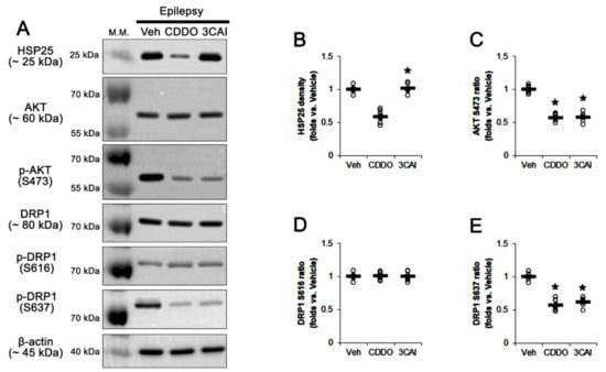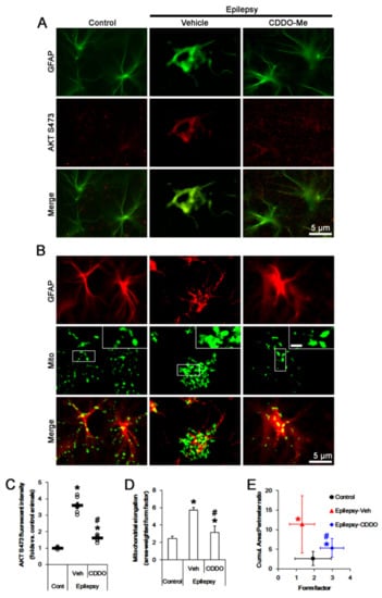 Chicago/Turabian StyleLee, Duk-Shin, Tae-Hyun Kim, Hana Park, and Ji-Eun Kim. 2022. "CDDO-Me Attenuates Clasmatodendrosis in CA1 Astrocyte by Inhibiting HSP25-AKT Mediated DRP1-S637 Phosphorylation in Chronic Epilepsy Rats" International Journal of Molecular Sciences 23, no. 9: 4569. https://doi.org/10.3390/ijms23094569