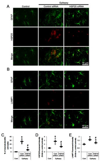- Kim, J.-E.; Hyun, H.-W.; Min, S.-J.; Kang, T.-C. Sustained HSP25 Expression Induces Clasmatodendrosis via ER Stress in the Rat Hippocampus. Front. Cell. Neurosci. 2017, 11, 47. [Google Scholar] [CrossRef] [PubMed] [Green Version]