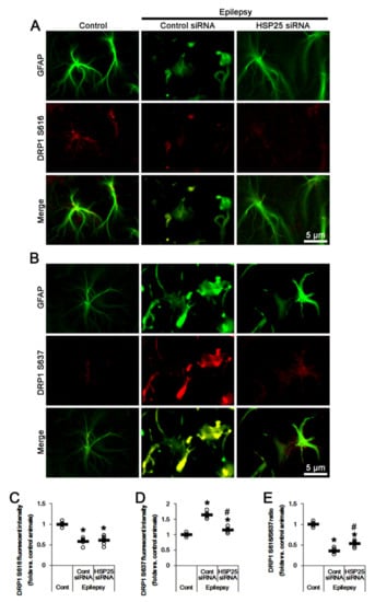 - Ko, A.-R.; Hyun, H.-W.; Min, S.-J.; Kim, J.-E. The Differential DRP1 Phosphorylation and Mitochondrial Dynamics in the Regional Specific Astroglial Death Induced by Status Epilepticus. Front. Cell. Neurosci. 2016, 10, 124. [Google Scholar] [CrossRef] [Green Version]