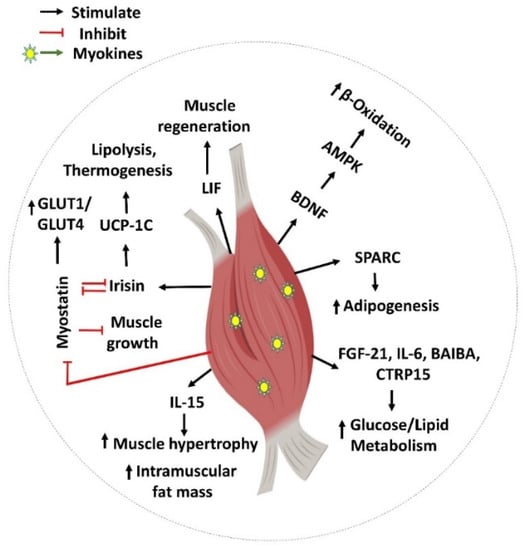 - Pedersen, B.K.; Febbraio, M.A. Muscles, exercise and obesity: Skeletal muscle as a secretory organ. Nat. Rev. Endocrinol. 2012, 8, 457–465. [Google Scholar] [CrossRef]