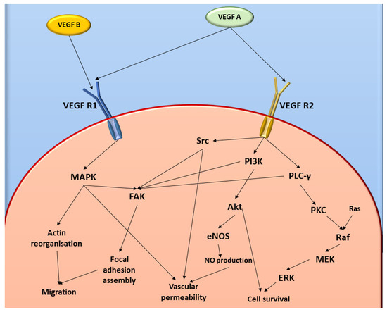 Diagrammatic representation of VEGF and FAK cell signalling pathways. Image was designed by DA Gomes using Microsoft® Office PowerPoint (Microsoft Office enterprise 2007, 2006 Microsoft Corporation, Redmond, WA, USA).