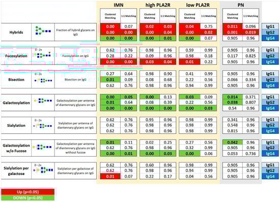 2.3. IMN-Specificity of IgG Glycan Signatures