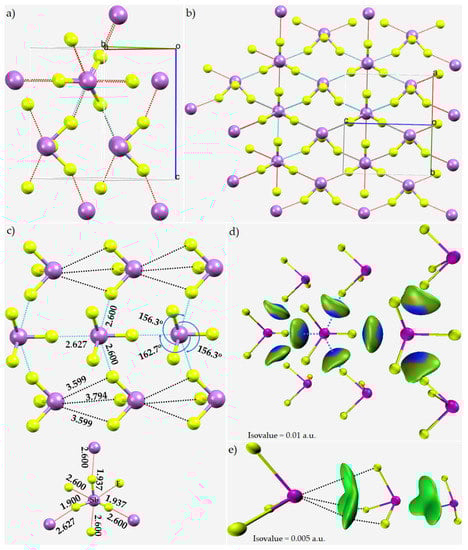 Table 1, for instance, lists the vdW radii of some selected atoms that we invoke throughout this overview, showing that the Bondi’s radius for a given atom type is different from those proposed by others. Since the specific vdW radius of an atom in different molecular entities is unknown, we use the same radius of an atomic domain to examine the “less than sum of the vdW radius concept”, regardless of the lattice systems examined. While “an interatomic distance that is greater than the sum of the respective vdW radii by even several tenths of an ångstrom may still correspond to a non-covalent interaction” [], caution needs to be exercised to validate the interaction by simultaneously examining attributes like its directional features and the nature of the polarity of the bound atomic basins. Otherwise, such an assignment could be misleading. In our discussion below, we use the vdW radii of atoms proposed recently by Alvarez [].