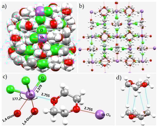 - Rheingold, A.L. BEKHUV01: Catena-[tris(μ-1,4-dioxane)-hexachloro-di-antimony(III)]. Deposition No. 735005. Available online: https://www.ccdc.cam.ac.uk (accessed on 20 December 2021).