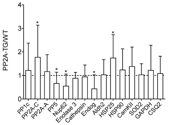 - Gergs, U.; Boknik, P.; Buchwalow, I.; Fabritz, L.; Matus, M.; Justus, I.; Hanske, G.; Schmitz, W.; Neumann, J. Overexpression of the catalytic subunit of protein phosphatase 2A impairs cardiac function. J. Biol. Chem. 2004, 279, 40827–40834. [Google Scholar] [CrossRef] [PubMed]