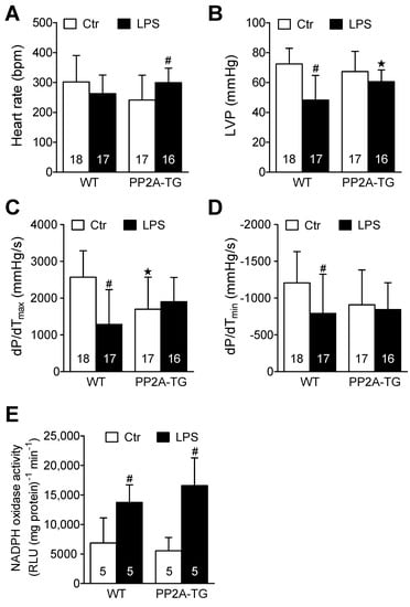 - Marshall, M.; Anilkumar, N.; Layland, J.; Walker, S.J.; Kentish, J.C.; Shah, A.M.; Cave, A.C. Protein phosphatase 2A contributes to the cardiac dysfunction induced by endotoxemia. Cardiovasc. Res. 2009, 82, 67–76. [Google Scholar] [CrossRef]