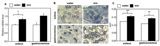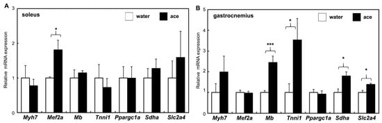 2.3. Effect of Acetic Acid on the Gene Expression of Skeletal Muscles