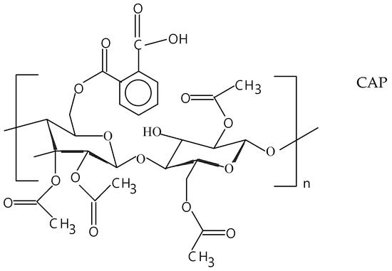 General chemical structures of cellulose acetate phthalate (CAP) and polyvinyl alcohol (PVA).