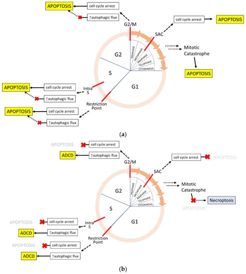 - Castedo, M.; Perfettini, J.-L.; Roumier, T.; Andreau, K.; Medema, R.; Kroemer, G. Cell Death by Mitotic Catastrophe: A Molecular Definition. Oncogene 2004, 23, 2825–2837. [Google Scholar] [CrossRef] [PubMed]