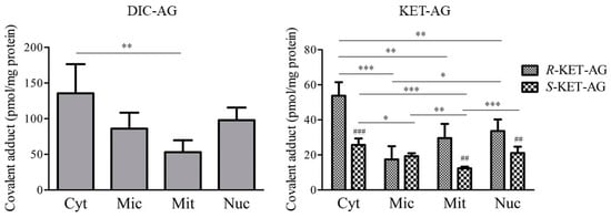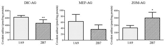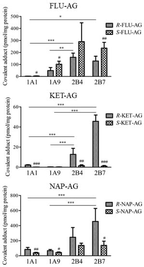 4.5. Covalent Adduct Formation of NSAIDs-AG with Organelle Proteins, UGT1A, and UGT2B Isoforms