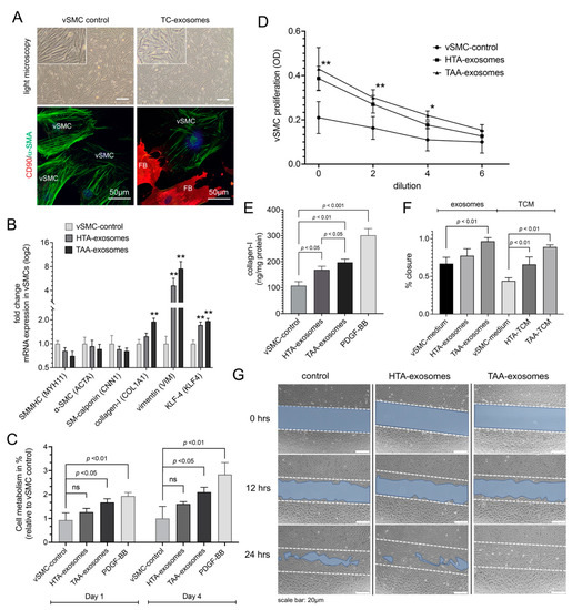 2.3. Exosomes Isolated from TCs Influence vSMC Phenotype Characteristics