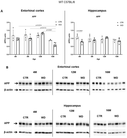 WD Causes a Decrease of Full-Length APP Protein Level Specifically in Entorhinal Cortex but Not in the Hippocampus in WT C57BL/6J Mice