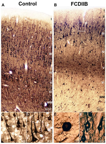 - Nakagawa, J.M.; Donkels, C.; Fauser, S.; Schulze-Bonhage, A.; Prinz, M.; Zentner, J.; Haas, C.A. Characterization of focal cortical dysplasia with balloon cells by layer-specific markers: Evidence for differential vulnerability of interneurons. Epilepsia 2017, 58, 635–645. [Google Scholar] [CrossRef] [PubMed]