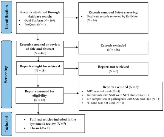 APA StyleElsaid, S., Rubin-Kahana, D. S., Kloiber, S., Kennedy, S. H., Chavez, S., & Le Foll, B. (2022). Neurochemical Alterations in Social Anxiety Disorder (SAD): A Systematic Review of Proton Magnetic Resonance Spectroscopic Studies. International Journal of Molecular Sciences, 23(9), 4754. https://doi.org/10.3390/ijms23094754