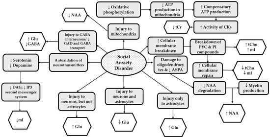 Elsaid S, Rubin-Kahana DS, Kloiber S, Kennedy SH, Chavez S, Le Foll B. Neurochemical Alterations in Social Anxiety Disorder (SAD): A Systematic Review of Proton Magnetic Resonance Spectroscopic Studies. International Journal of Molecular Sciences. 2022; 23(9):4754. https://doi.org/10.3390/ijms23094754