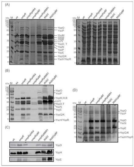 2.6. The Expression/Secretion of Yop Proteins in the ompR Mutant Is Correlated with the Amount of Regulatory Protein FlhDC