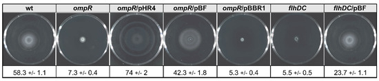2.7. The Relevance of FlhDC Expressed in Trans in the OmpR- and FlhDC-Deficient Strains on Y. enterocolitica Motility
