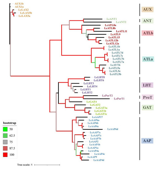 - Tegeder, M.; Ward, J.M. Molecular evolution of plant AAP and LHT amino acid transporters. Front. Plant Sci. 2012, 3, 21. [Google Scholar] [CrossRef] [Green Version]