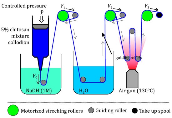 - Notin, L.; Viton, C.; Lucas, J.-M.; Domard, A. Pseudo-Dry-Spinning of Chitosan. Acta Biomater. 2006, 2, 297–311. [Google Scholar] [CrossRef]