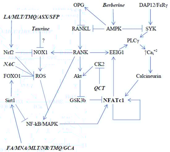 - Lee, N.K.; Choi, Y.G.; Baik, J.Y.; Han, S.Y.; Jeong, D.-W.; Bae, Y.S.; Kim, N.; Lee, S.Y. A crucial role for reactive oxygen species in RANKL-induced osteoclast differentiation. Blood 2005, 106, 852–859. [Google Scholar] [CrossRef]
